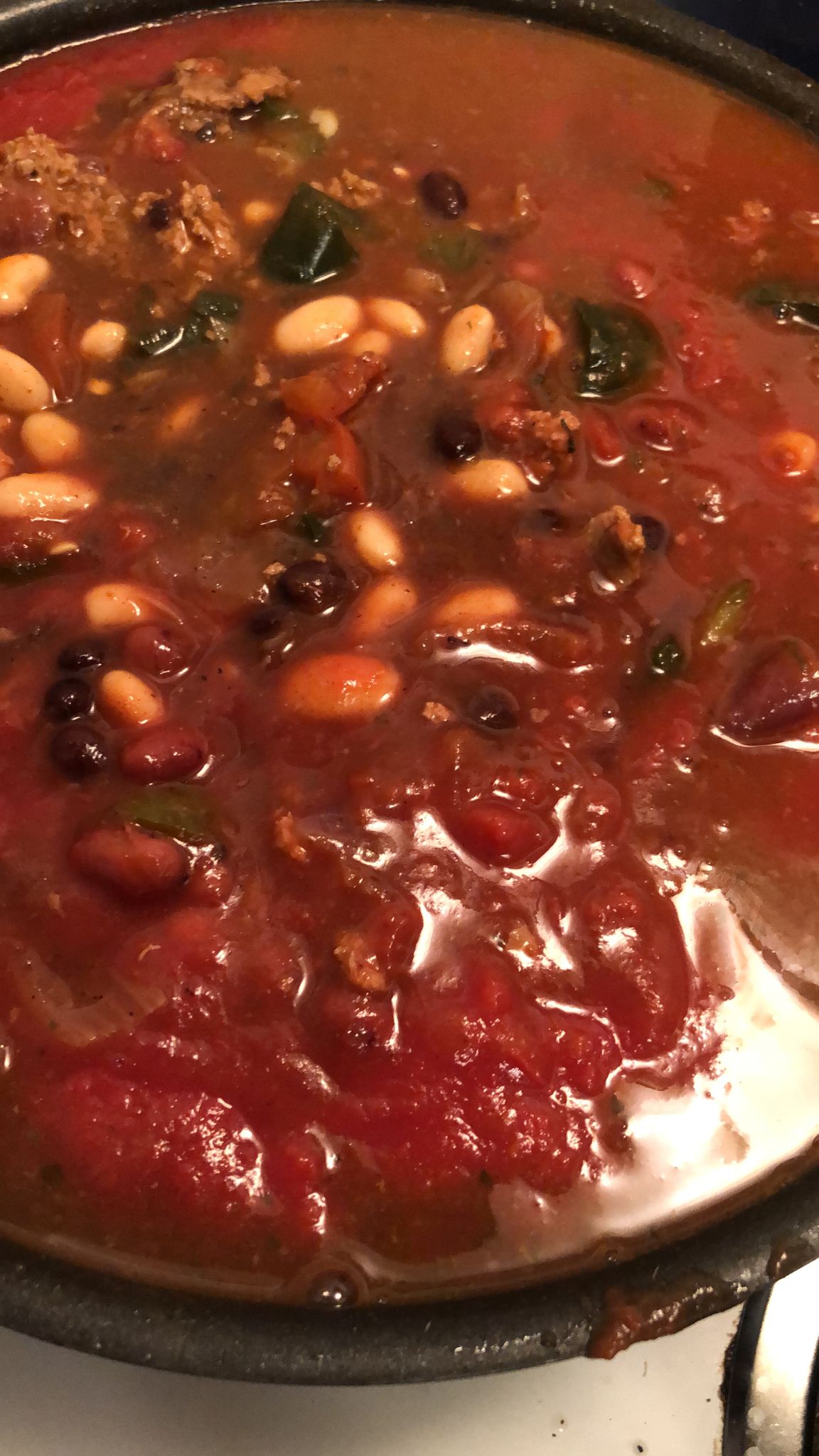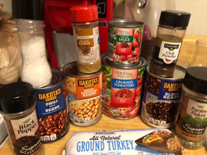 1 can each of chili beans, great nothern beans, black beans (don’t drain)