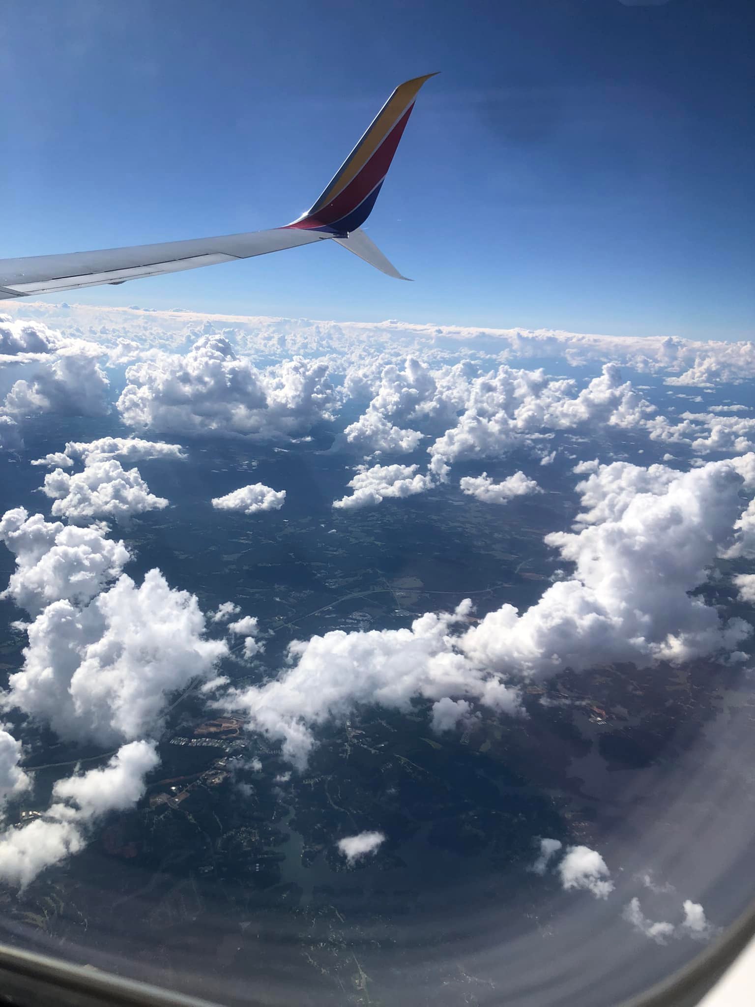 Flying over ColoradoCloud watching, making shapes out of the clouds as a game for myself I like the window seat so I can either look our or lean against for a napMy carry on and personal item fit easily under the seat, pliable material helps it to tuck under the seatMy luggage is easily identifiable, saving stress and headachCheck the departures board for any new infoGSP airport has a cool signAtlanta airport statue gardenDenver airport is a Gargoyle