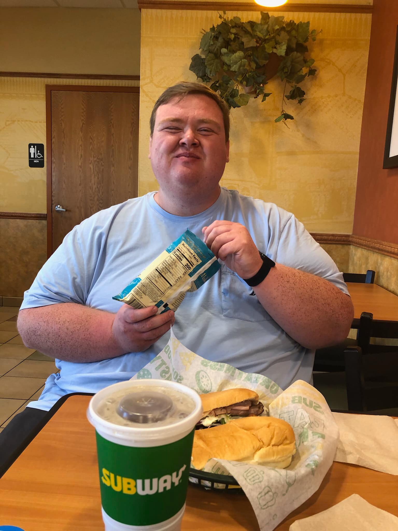 Go to the restroom before boarding, no matter one’s size or shape, airline toilets are cramped, tight and not comfy