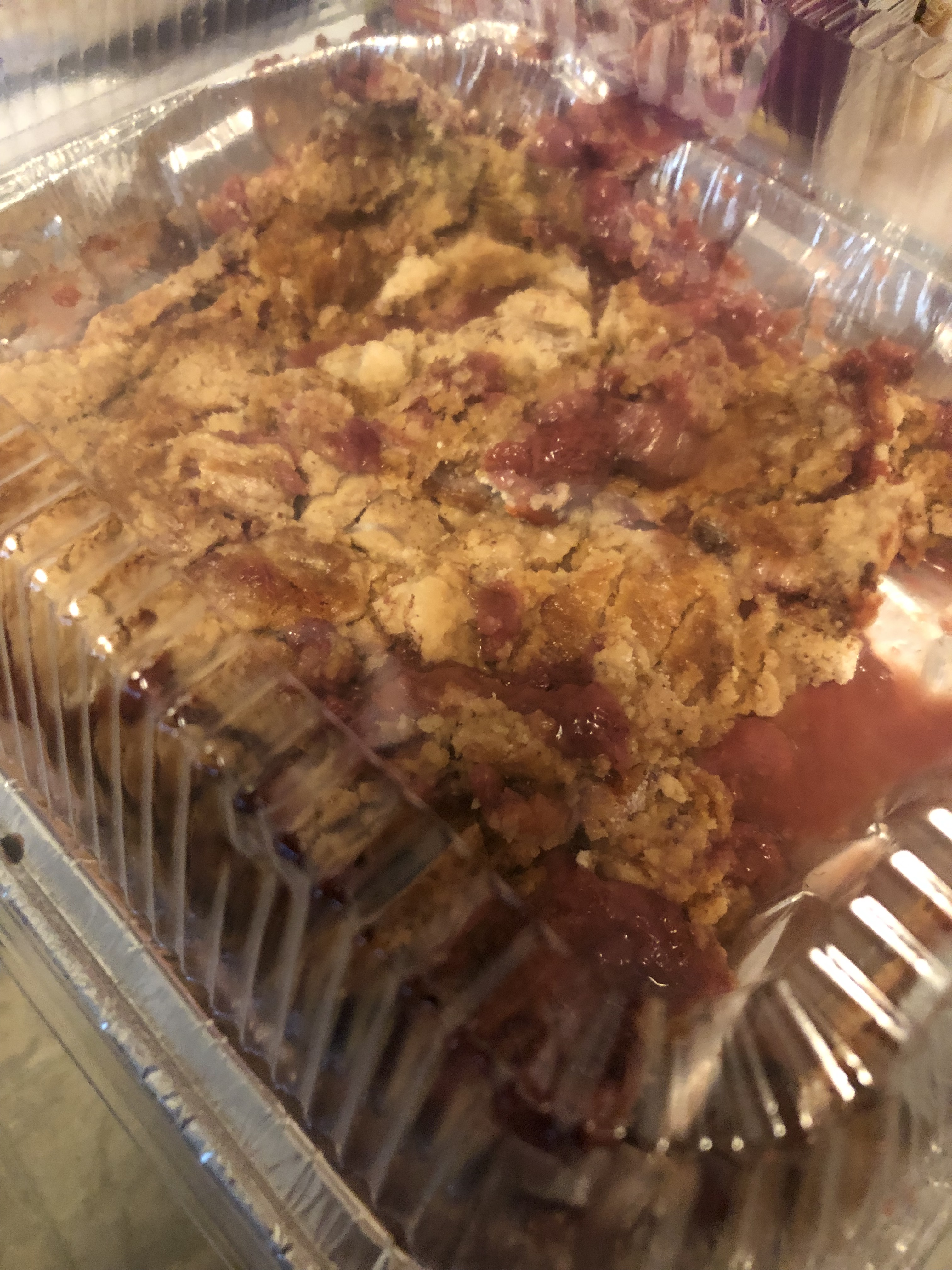 When my sister and I met for our nail appointment today at the salon she stated she had something for me in her vehicle and to make sure I got it after we finished up-I never expected it to be a specail Strawberry Rhubarb Crunch!