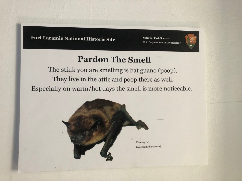 Fort Laramie offers a walk through map of all the grounds, which is outstanding. The fort itself has many buildings that can also be toured. These include barracks, commissaries, Surgeons residents, and the Bedlam. The Bedlam has a fascinating back story of its name and history. There are ruins where edifices didn’t survive the time and plaques of information to enlighten.