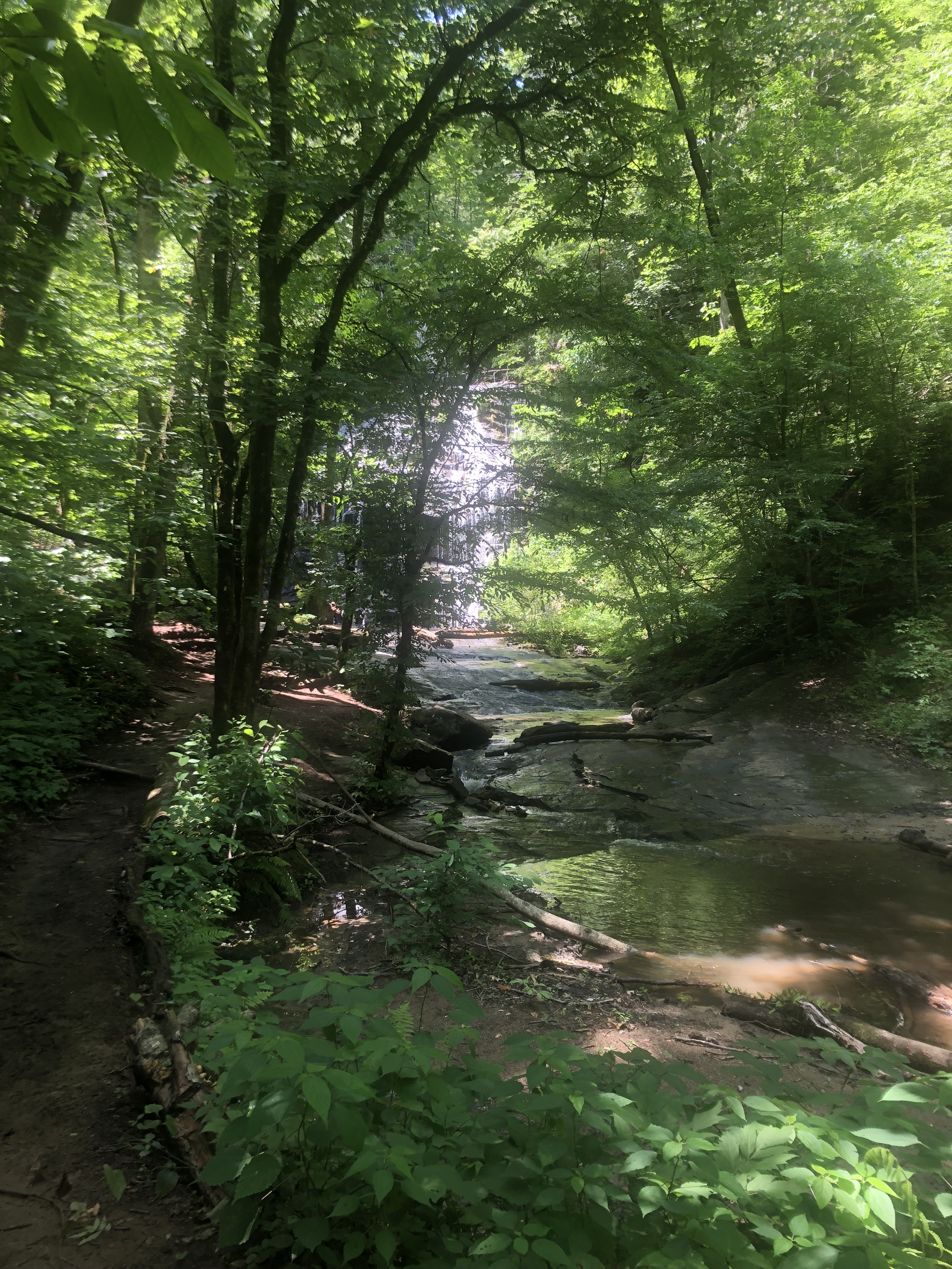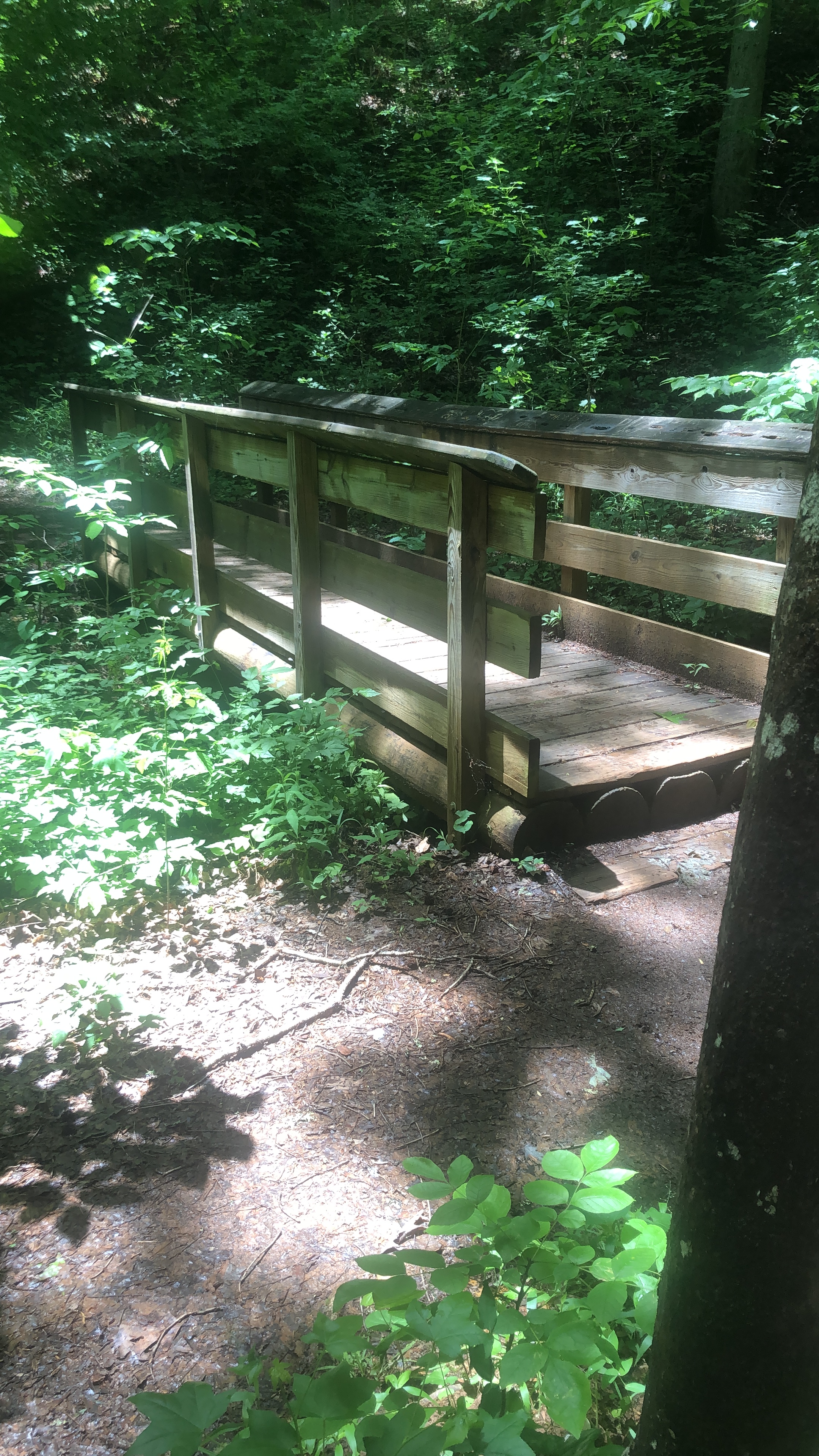 Even with a funky knee, the trail was pleasantly mild and traversed it in roughly 35 minutes one way–it’s not wheel chair or scooter friendly for those whom need assistive devices but it’s family and adventure friendly for sure! Saw families enjoying splash time in the small creeks along the way and other families walking their bull mastiff and other dogs, so everyone one could be included!