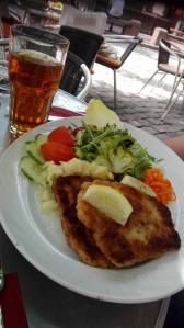 A great restaurant with outdoor seating in the plaza, offering wonderful food and traditional German cuisine, and, of course, I enjoyed the German hearty meal of Schnitzel, mixed salad, and potatoe salad. A wonderful meal in the plaza, a great way to fuel up on an adventure and a tasty way at that!!