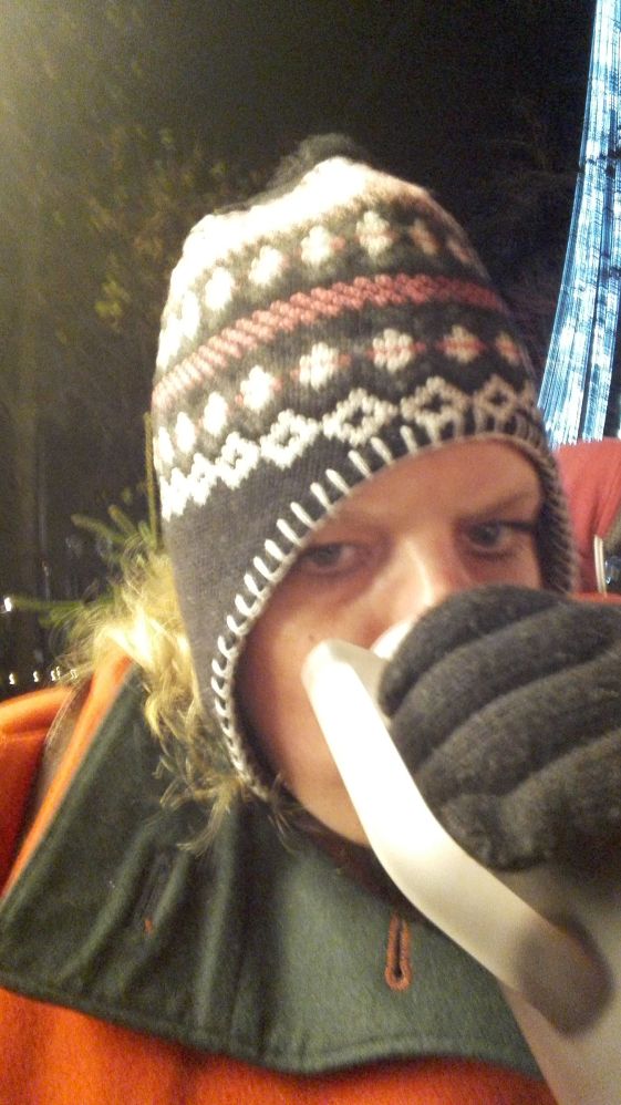 I am drinking hot red glühwein, too!! It is so good and really is lovely on a cold night, walking around the market