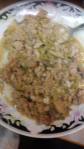 turkey sausage, mushroom gravy over green beans (instead of pasta)