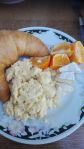 Crossiant (not homemade), clementine slices, scrambled eggs and brie wedges