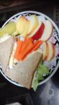Open face Tuna Salad with tomatoe slices and red bell pepper spears