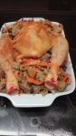 Baked chicken, sweet potatoes, zuchinni, and onion, a one dish wonder