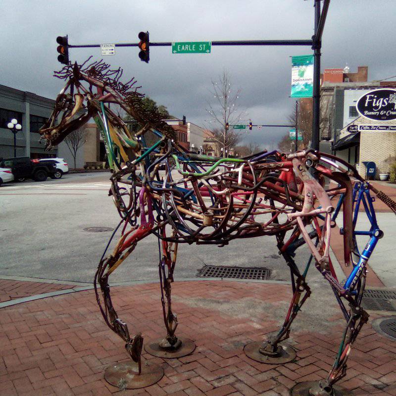 Jitters Brewing and Bean, Central, S.C. Jonathon enjoyed a Cortado and pastry. I drank a lavender latte, delicious!Mexican Dominoes game with Papa, Belton, S.C. I lost horribly. Papa won big time. Downtown Anderson, S.C. The famous statue in front of the courthouseJonathon is being funny with Mr. WhitnerMy brother and I enjoyed a walk to Issaqueena FallsThe Infamous Falls My brother is being silly My brother is taking in the fresh air and singing to the falls The back end of StumpHouse TunnelA horse sculpture made out of old bicycles, The light at the end of Stumphouse TunnelThe entrance to Stumphouse tunnel